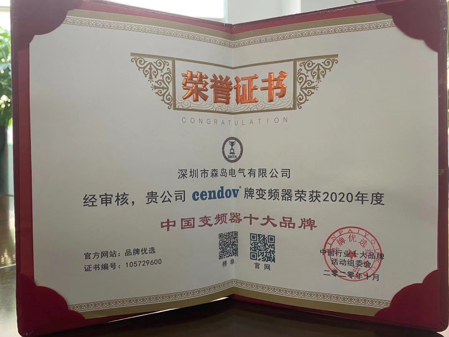 十年磨一剑,森岛cendov®荣获变频器十大品牌。感谢合作伙伴的支持;感谢所有关心森岛的佳人;森岛公司将再接再厉更好的为您服务创造更多的价值和辉煌!我们的明天会更好!