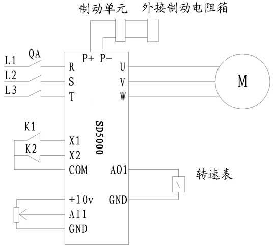 主电机变频器使用森岛SD5000系列开环矢量型变频器。