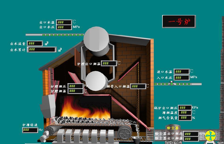 自动化控制系统配备了现场各类传感器,所有现场数据均通过专用电缆传到计算机及二次显示仪表。水泵、鼓引风机等设备均通过变频器、PLC等来驱动。这样,司炉工完全不必到现场观察数据,调节挡板及阀门等。只需在中央控制室里即可完成全部控制、记录。这样,减轻了工人的工作量又减少了人力资源的浪费。并且操作简单,维护方便,减少事故率。