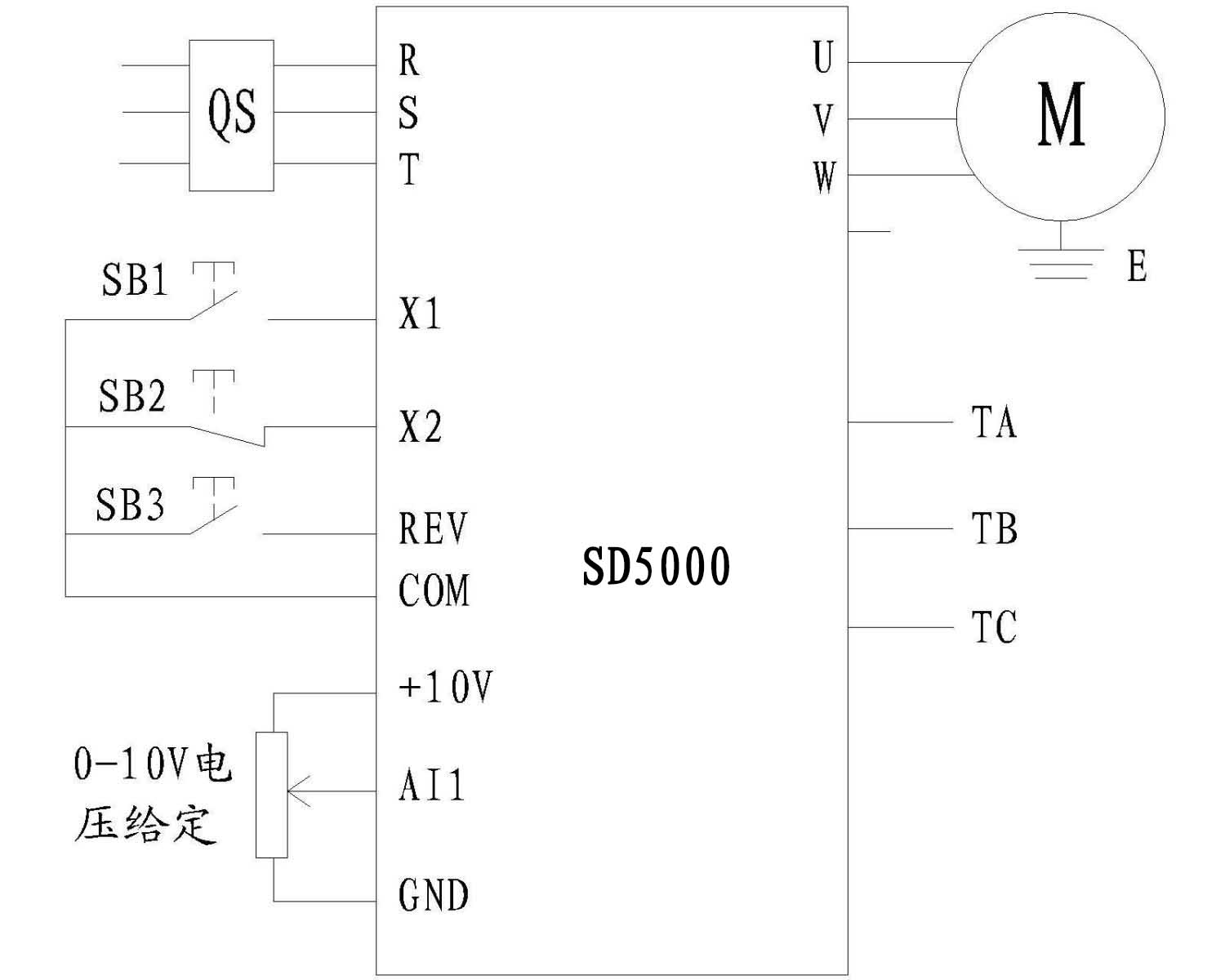 以引风机为例下面是SD5000-4T2800G变频器的控制线路图: