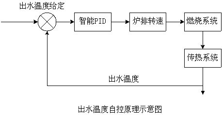 当外部负荷变化时,出水温度随之变化,为了确保锅炉出水水温不随供水量的变化而变化,调节炉排变频器频率输出,控制链条的前进速度,改变进煤量,送风量也随之变化,从而使锅炉出水水温恢复到给定值。