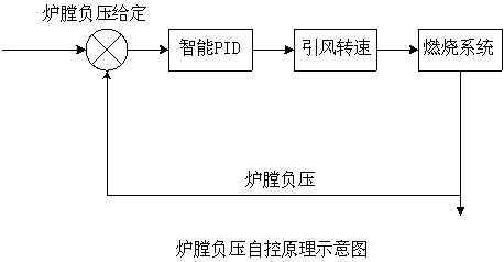 炉膛负压是表征送风量是否平衡的一个物理量。当出水温度变化时,煤量、鼓风量也随之变化,同时引风量也作相应的调整,以维持炉膛负压在额定值,从而保证工业锅炉的安全运行。为了确保锅炉能在炉膛处于微负压状态下燃烧,通过调节引风变频器频率输出,进行炉膛负压的控制。