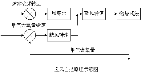 鼓风变频转速的控制非常重要。当炉排转速发生变化时,鼓风转速应随之变化,以期达到最佳燃烧效果。鼓风变频转速的控制通过固定风煤比经验公式加烟气含氧量模糊较正来实现。